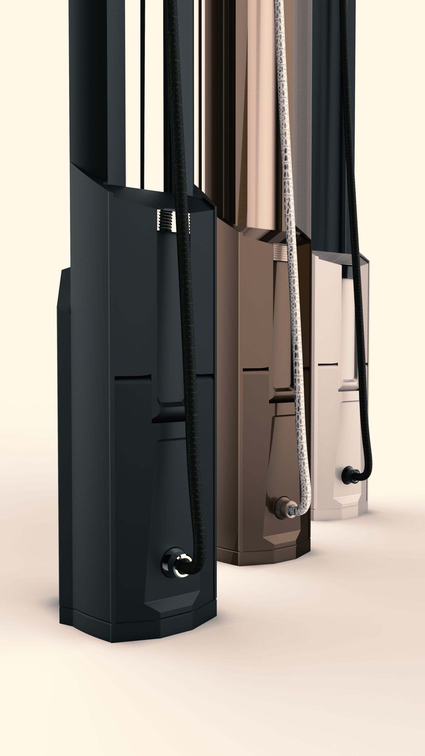 Navržené barevné řešení podtrhuje prémiovost produktu nejen využitím decentní barevnosti, ale i příkladem použitých materiálů a jejich povrchovou úpravou. Mezi některé z nich patří kombinace matných a lesklých povrchů eloxovaného hliníku.