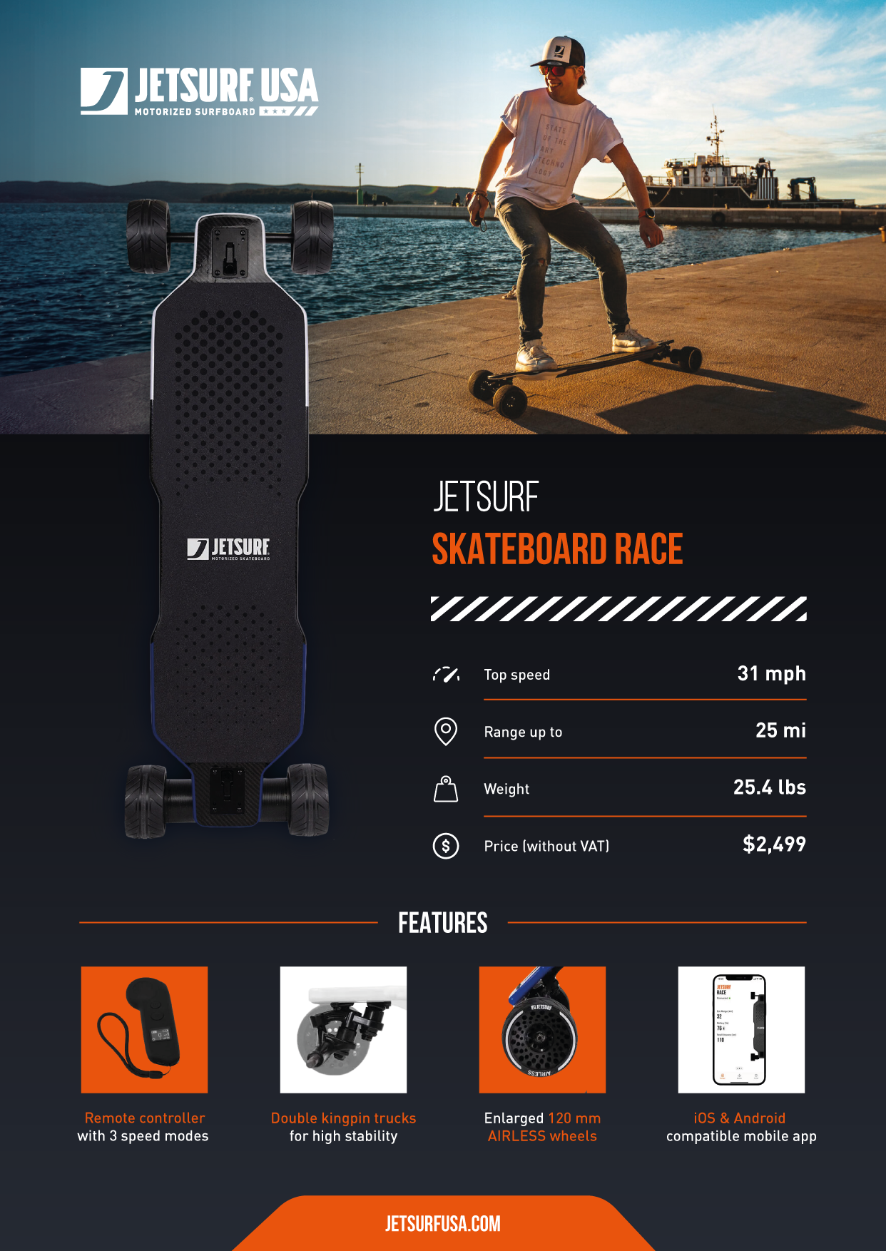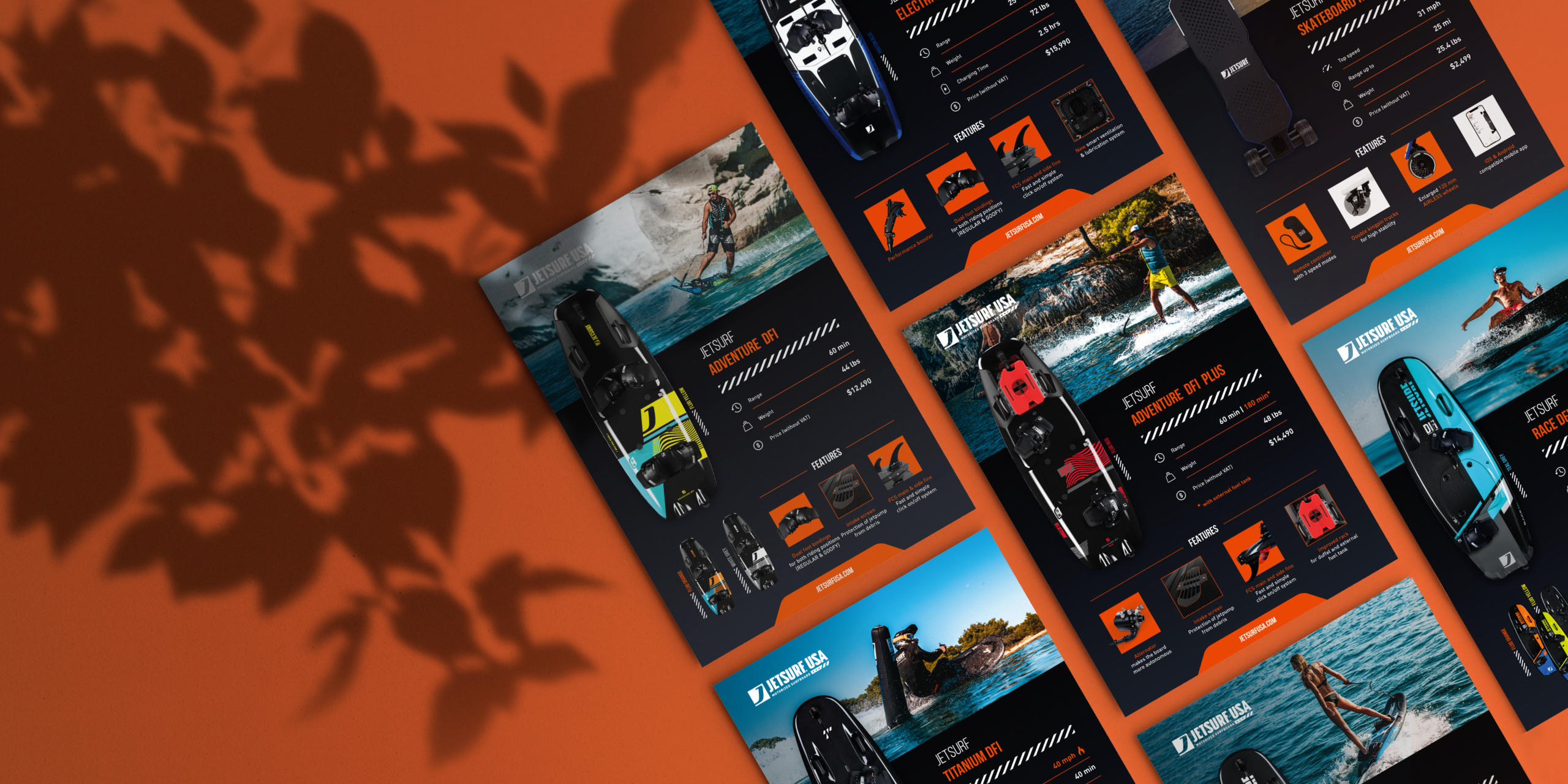 Pro amerického distributora značky Jetsurf, českého výrobce motorových surfů a elektrických skateboardů, vznikaly příspěvky na sociální sítě, online bannery a motion grafika podporující prodej, speciální akce a eventy.